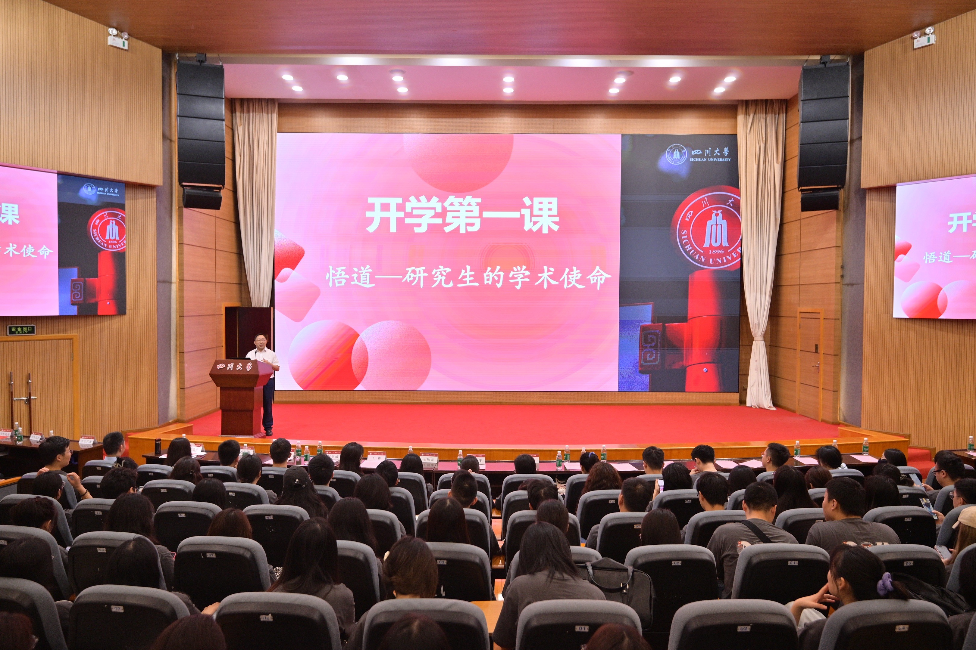 金秋送爽,丹桂飘香。9月14日上午,公共管理学院2025级研究生开学典礼暨“开学第一课”在望江校区西区五教演播厅举行。学院党委书记王彬,院长夏志强,教育部重要人才计划入选者姜晓萍、王敬尧,全体领导班子成员,各系、各部门教师,全体2025级研究生参加典礼,副院长范逢春主持。