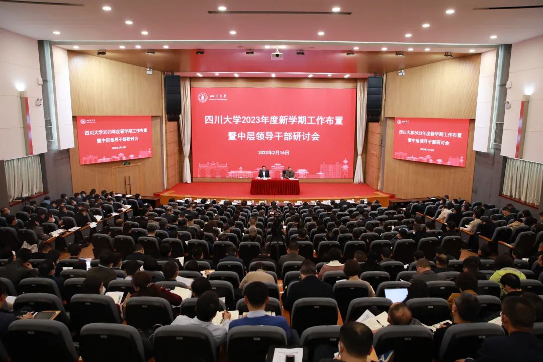 216-17日,学校在望江校区召开2023年度新学期工作布置暨中层领导干部研讨会,学习贯彻党的二十大精神和习近平总书记重要讲话精神,研讨2023年度学校重点工作,高质量推进中国特色世界一流大学建设。校党委书记甘霖、校长李言荣等全体校领导,冯小明院士、王琪院士、曹顺庆杰出教授、钟本和杰出教授,高层次人才代表,全体中层领导干部,专职科研机构负责人参加会议。会议由李言荣主持。